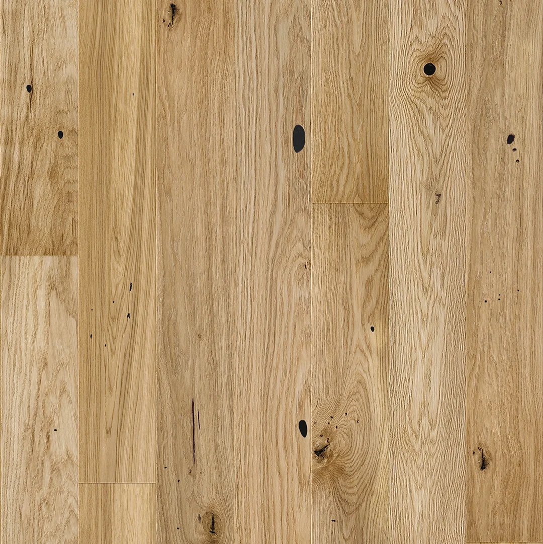 Drevená podlaha Barlinek Dub Raisins Medio prináša do interiéru prirodzený a rustikálny vzhľad, ktorý zdôrazňuje autentická štruktúra dreva. Povrch je kartáčovaný a ošetrený matným lakom, čo mu dodáva elegantný vzhľad a zároveň zvyšuje jeho odolnosť. Podlaha má štvorstrannú mikro V-drážku, ktorá zvýrazňuje jednotlivé dosky a opticky predlžuje priestor. Kolekcia Country prináša prirodzenú rozmanitosť farieb a kresby dreva, čím vzniká podlaha s jedinečným charakterom. Skvele sa kombinuje s našimi podlahovými lištami, čím dotvoríte harmonický vzhľad vášho interiéru.