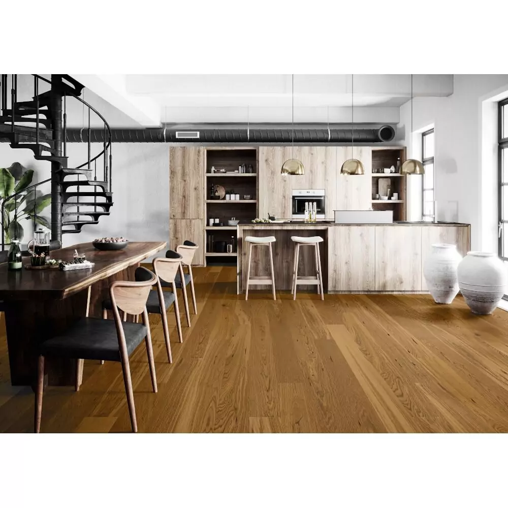 1. Prírodný a elegantný dizajn: Drevená podlaha Dub Natur Honey Brown pridá do vášho domova štýlovú atmosféru vďaka svojmu jedinečnému karamelovému odtieňu a kvalitnému dubovému drevo.