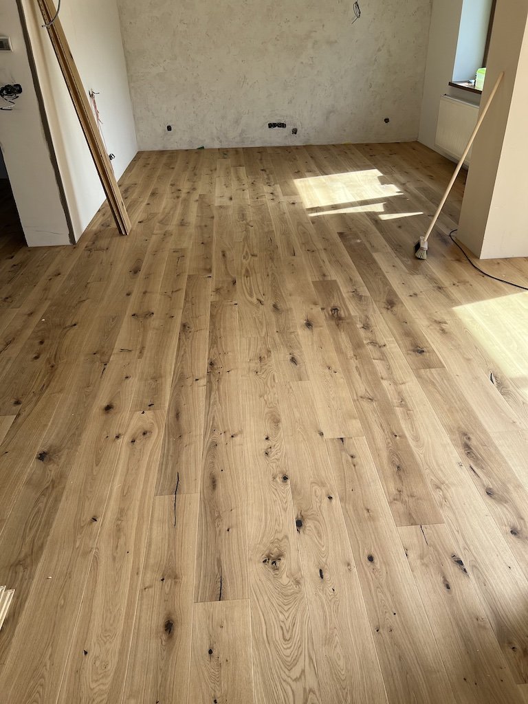 Povrch je ošetrený olejom a jemne kartáčovaný, čo zvýrazňuje prirodzenú štruktúru dreva a dodáva mu autentický charakter. Svojou hrúbkou 14 mm zaručuje stabilitu a vhodnosť pre podlahové kúrenie, pričom tepelný odpor je 0,13 m² K/W.